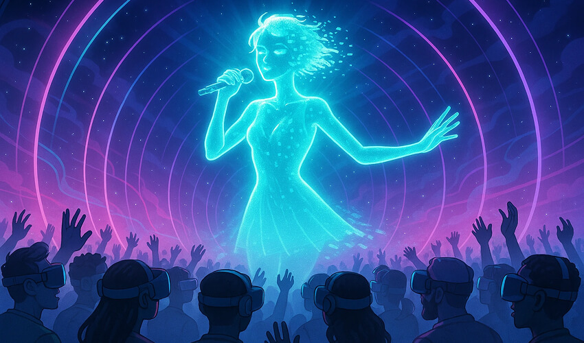 - LLM-designed bands that hold “world tours” in mixed-reality venues