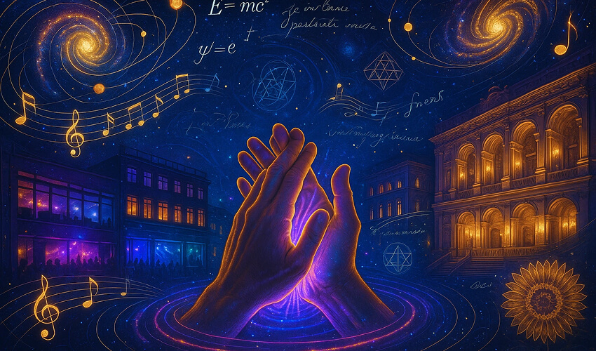 It invites us to recognise the invisible patterns that underlie both planets and playlists, beats and brainwaves. In music, logic and emotion, science and spirit, matter and mind do not clash but dance together, two hands clapping to the cosmic rhythm.
