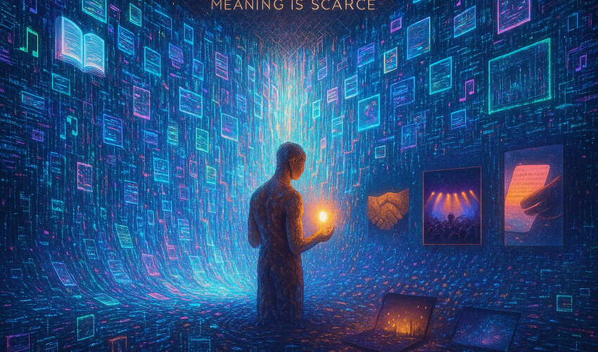 When creation costs near zero, abundance floods the world with content novels, songs, images, and data. But abundance threatens to devalue the very creations it produces.