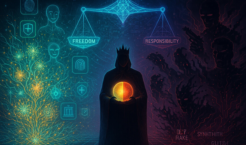 AI’s dark shadows loom: deepfakes, cyberweapons, synthetic pathogens. In a permissionless world, internal ethical controls are paramount. Wisdom, empathy, virtue, these become the true gatekeepers.